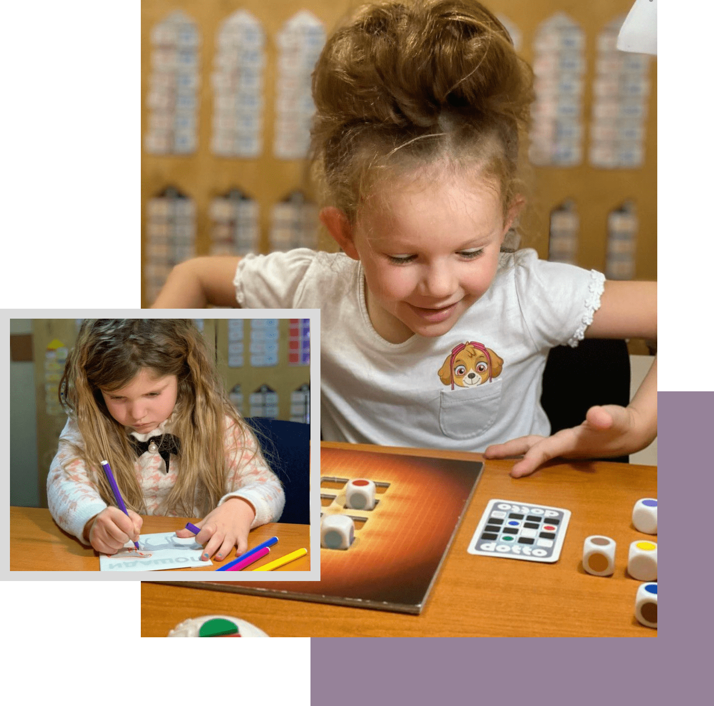 Наши занятия проходят индивидуально. Занятие проходит в игровой форме, ребёнок развивает зрительную и слуховую память, мелкую и крупную моторику, логическое мышление и навыки, соответствующие возрасту.