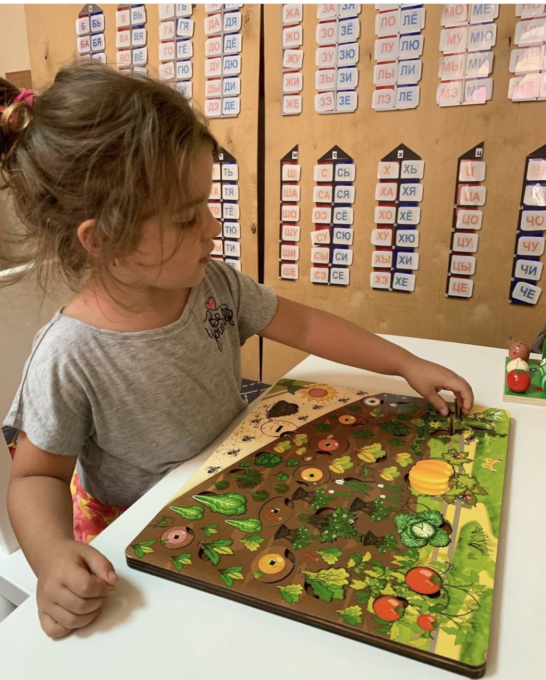 Наши занятия проходят индивидуально. Занятие проходит в игровой форме, ребёнок развивает зрительную и слуховую память, мелкую и крупную моторику, логическое мышление и навыки, соответствующие возрасту.